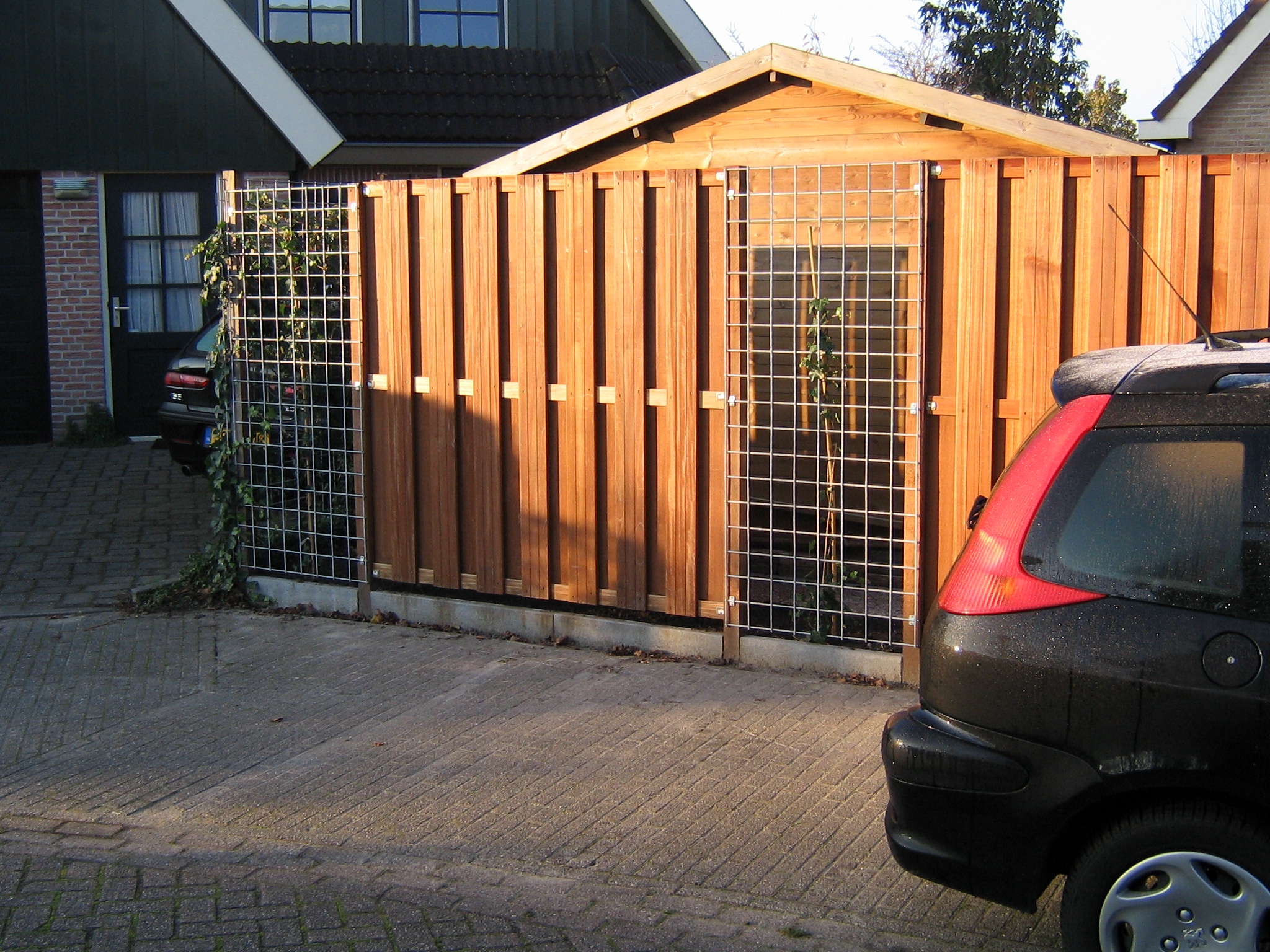 Combinatie gaaspeneel met hardhouten schutting